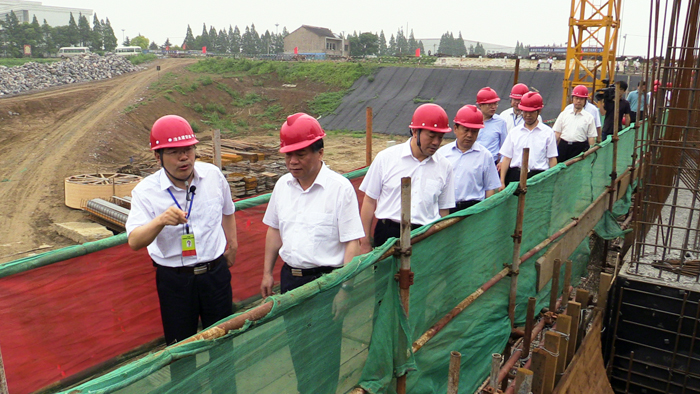 6月24日上午,省委常委、常务副省长李云峰率领省有关部门负责同志调研太湖水环境综合治理新沟河拓浚延伸工程建设情况。省水利厅党组成员、省水利工程建设局局长朱海生汇报了工程建设情况。我公司董事长夏国春、副总经理、总工程师翟高明参加调研活动。
