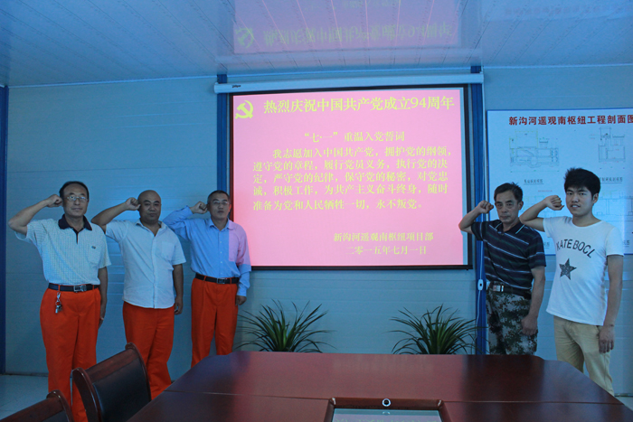 2015年7月1日是中国共产党建党94周年纪念日,公司第二分公司党支部在新沟河遥观南枢纽项目部开展庆祝活动,在活动中让支部党员受到深刻的党性教育。