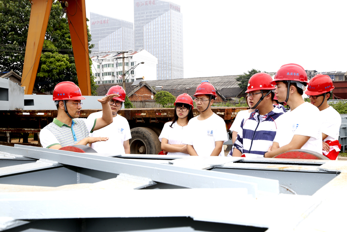 7月9日上午,河海大学钢结构专业8名大学生来到江苏省水利机械制造有限公司(河海大学实习基地)实习。公司领导高度重视,指派专业工程技术人员接待,大学生们观看了公司专题片,认真听取了专家的介绍,参观了钢结构车间、金加工、装配车间,了解了闸门的生产工艺流程,感觉受益匪浅。