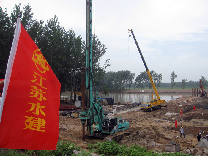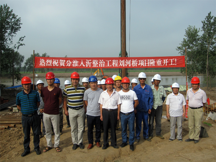 88上午8时,分淮入沂整治宿迁市刘河桥工程第一根灌注桩破土动工,12时浇桩结束,标志着该工程进入了正式施工阶段。