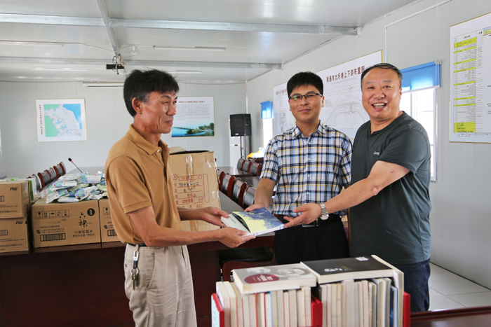 在开展慰问活动的同时,公司工会在南通九圩港项目部、新沟河江边枢纽项目部、七浦塘江边枢纽项目部设立了流动书屋,为一线员工送去了内容丰富的纸质图书,受到了大家的欢迎。图书一发放即被借阅一空,较好地推动了公司全员阅读活动的开展。