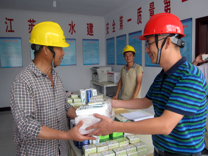 7月中旬进入高温以来,公司党委副书记、工会主席姜启生带领工会、共青团相关同志,走进公司各个在建工程项目部,看望慰问高温坚守在岗位的一线员工,为他们送去了清凉用品、安全图书。