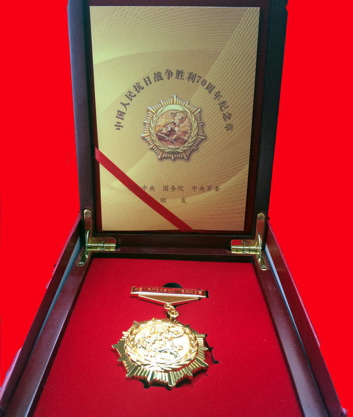 在全国人民庆祝中国人民抗日战争胜利70周年之际,公司5名抗战老兵喜获中共中央、国务院、中央军委颁发的“中国人民抗日战争胜利70周年纪念章”。