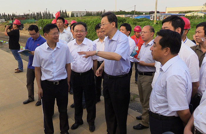 在江边枢纽工程施工现场,李学勇听取了朱海生关于治太工程实施情况的汇报。新沟河延伸拓浚工程是继已建成的走马塘工程后正在实施的又一重点项目,工程于20139月开工建设,目前,全线征迁工作已基本完成,工程沿线5个枢纽全面实施。截至8月底,累计完成投资约35.5亿元,占工程总投资的63%。新孟河工程正在抓紧前期工作,即将开工建设。李学勇对治太工程取得的进展十分欣慰,他希望广大水利建设者加快建设进度,争取明年基本完成新沟河工程,全力推进新孟河工程建设,早日发挥治太工程“三驾马车”的效益。他还叮嘱发展改革、财政等部门全力做好配合,在治太项目批复、资金安排等方面给予大力支持。