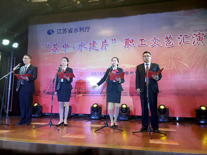12月18日,省水利系统“苏中、水建片”职工文艺汇演在泰州引江河管理处会议中心隆重举行,省水利厅机关党委书记汤超、工会主席张晓迅以及片区各单位工会领导现场观看了演出。我公司选送的配乐诗朗诵《治水壮歌》和男女声对唱《人间天河》分别荣获朗诵类和歌唱类节目三等奖。