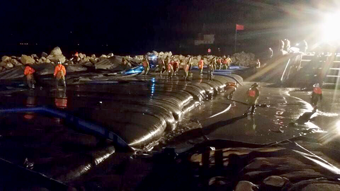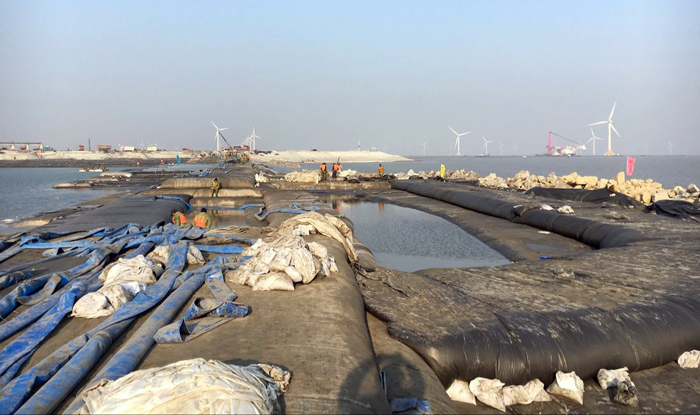 如东刘埠国家一级渔港围堤一次性合龙成功