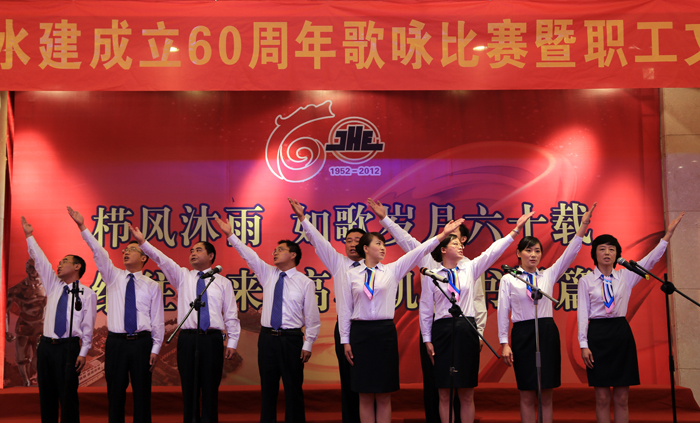 10月26日上午,公司“迎十八大、庆祝江苏水建成立60周年歌咏比赛暨职工文艺汇演”隆重举行,公司各单位、部门、项目部共有九个参赛队,一百余人参加比赛,近两百人参加了现场活动。