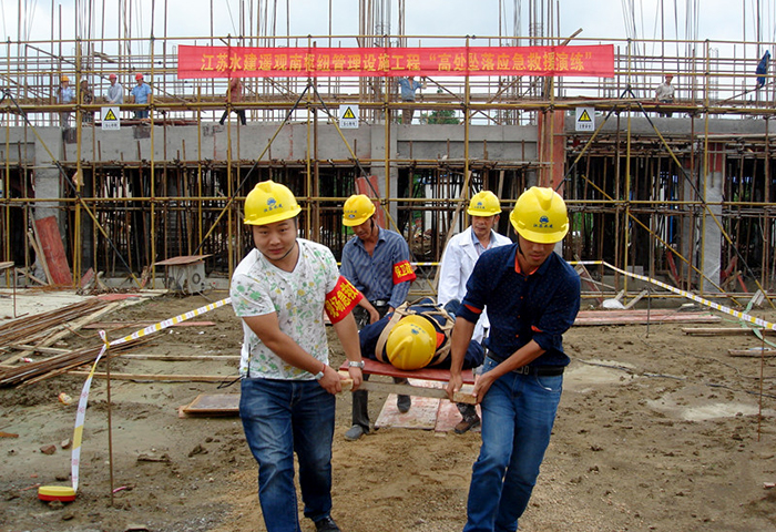 624日上午9时,房建分公司新沟河延伸拓浚工程遥观南枢纽管理设施项目部在宿舍楼施工现场组织开展了高处坠落事故应急救援预案演练。本次演练是由房建分公司项目部组织,建设单位、监理单位对本次演练进行了现场指导。