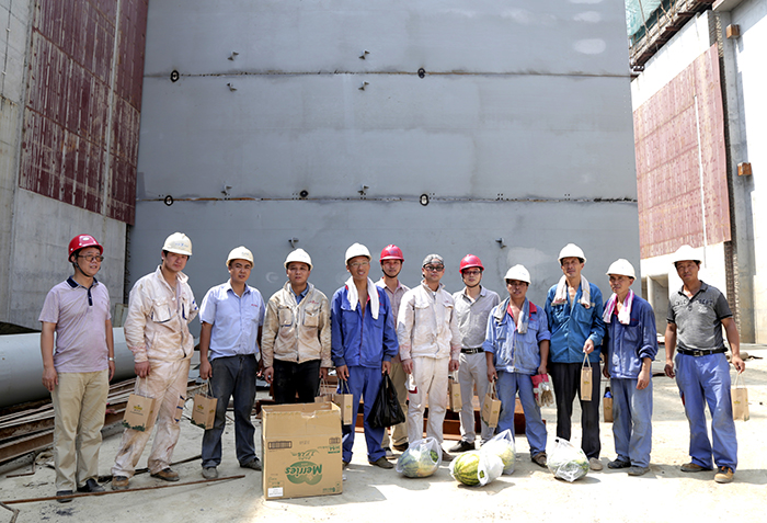725日,水机公司党委书记田建京、工会主席黄统及相关项目负责人前往芒稻闸、邵仙闸项目施工现场开展 “送清凉”活动,慰问战斗在高温酷暑下的一线员工。他们送去防暑降温用品、西瓜和慰问金,嘱托现场员工注意施工安全,合理调整作息时间,采取必要的防暑降温措施,团结一心,攻坚克难,确保优质高效地完成项目施工任务。