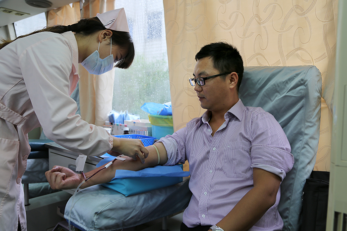 台风“鲇鱼”带来的风雨丝毫不影响公司员工的献血热情。上午750分,无偿献血车早已停在公司大院内静静等候,志愿者们纷纷前来登记化验,井然有序。这是由公司党委、工会、团委联合扬州红十字血站组织的无偿献血活动,来自公司及所属各单位党员、团员、普通员工40多人积极报名参加,有第一次参加献血的“积极分子”,更有坚持献血总量已超一万毫升的“献血达人”。最终27人成功献血9400毫升,大家以实际行动谱写了“爱的篇章”。