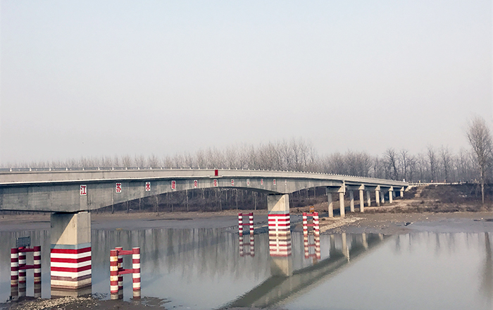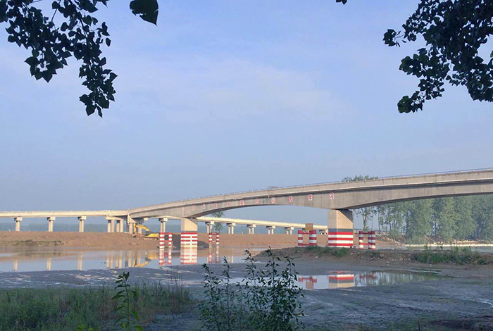 刘河桥工程由我公司基础工程分公司承建。工程于20158月开工,项目部积极采用新技术、新工艺,优化专项方案,攻克了主桥挂篮冬季施工、挂篮块件多次张拉、交叉作业施工等难题,于2016623日顺利完工,比计划工期提前了66天。刘河桥桥梁全长428m,交通荷载设计等级为公路二级,桥梁跨径组合为19×10+8+40+60+40+4×20+10m,桥梁主跨为60m三跨现浇连续箱梁结构形式,主桥自东岸过河到西岸后呈“T”字型南北方向展开,设计造型新颖独特。