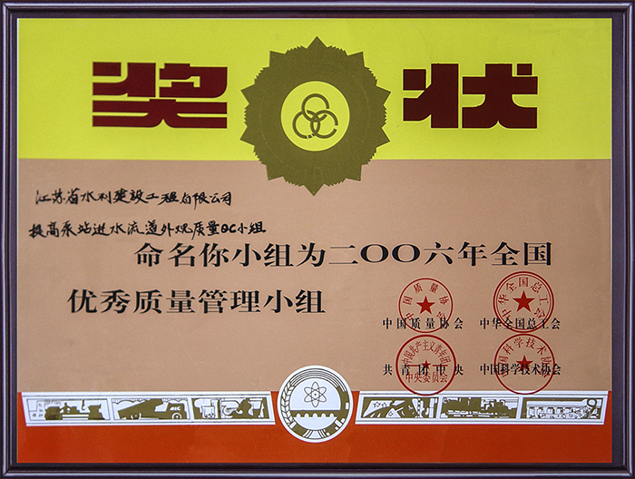 全国优秀质量管理小组奖状