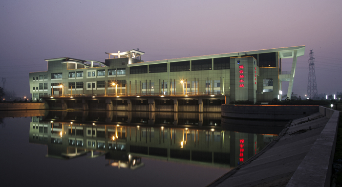 如今,新建的解台站拔地而起,恢弘大气。巍峨的建筑群丰满端庄,优美的外形曲线儒雅秀丽,水色交融的景观富足怡人,悠久的汉文化与现代水利精品工程交相辉映,大放光彩。