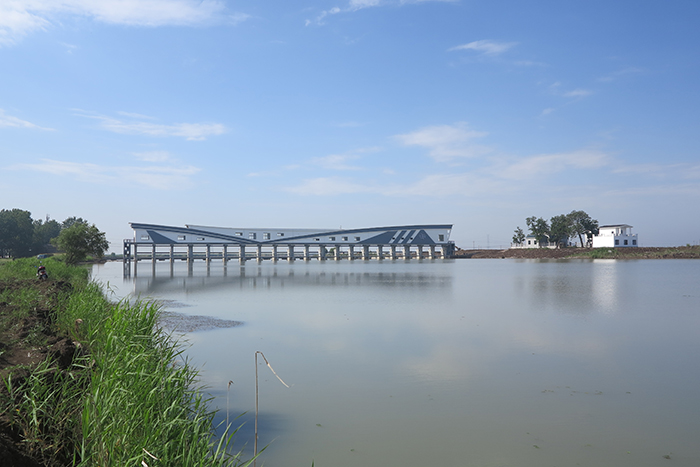 高邮市新港漫水闸位于高邮湖新民滩的河港上,介于高邮湖和邵伯湖之间,是淮河入江水道高邮湖控制线7座控制建筑物之一,主要功能为蓄水灌溉和行洪排涝。工程于20151120日开工,20160616日通过水下阶段验收。