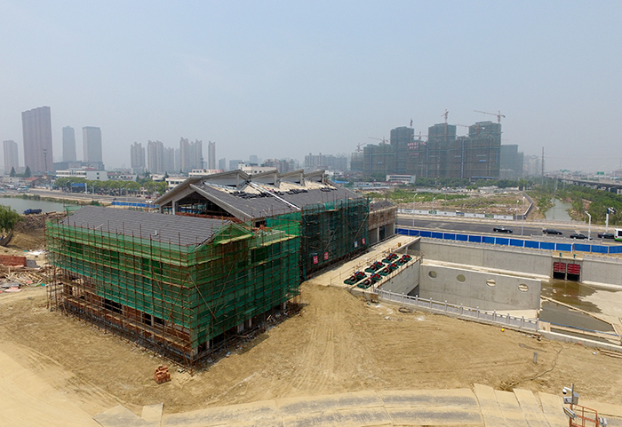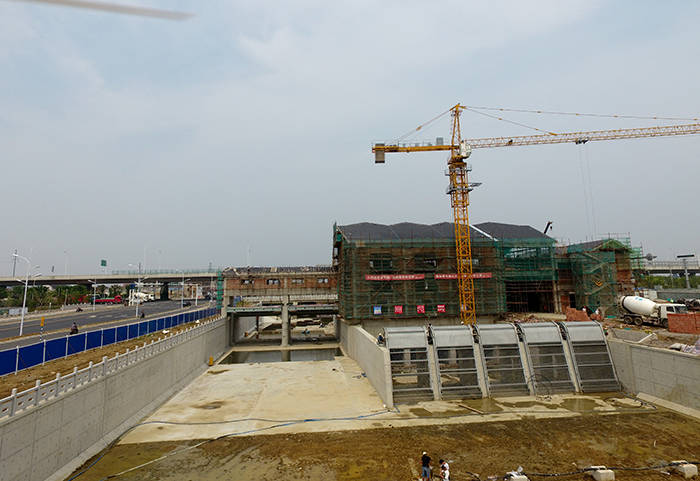 常熟市畅流活水工程一期项目常浒河枢纽工程包括节制闸和泵站,节制闸净宽为2×10m,泵站规模为45m3/s,兼顾排涝和活水功能。工程于2016108日开工,1112日开始基础灌注桩施工。因城市排涝要求,水下工程必须于5月底前完成,工期非常紧张。为保证施工进度,三分公司积极调配人力和物资至项目部,项目部也编制了详细的抢工计划,优化施工安排,各班组奋力拼搏、通力协作,于 525日顺利完成了水泵安装,工程具备水下验收条件。