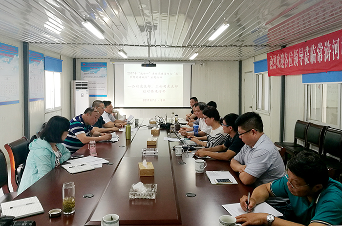 7月6日,第一工程分公司党支部、第三工程分公司党支部在常熟常浒河工程项目部开展了以“旗帜鲜明讲政治、立足岗位讲奉献”为主题的支部结对共建活动,两个支部的13名党员参加活动,公司副总经理、党委副书记姜启生参加活动并讲话。