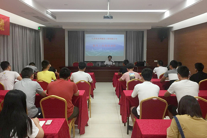 在开班讲话中,公司监事会主席、纪委书记黄祥圣向新员工介绍了公司的发展史、组织结构、公司资质以及荣誉,分了享艰苦创业、乐于奉献、团结拼搏、争创一流的公司创业精神。并对新员工提出了三点建议:一是态度决定一切;二是细节决定成败;三是要养成良好的做事和学习习惯,他同时鼓励新员工早日融入江苏水建这个大家庭,与公司共奋斗、共成长。