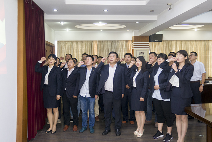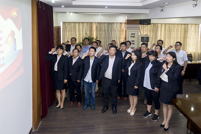 最后,公司董事长、党委书记时爱祥与新任职的中层干部一起进行履职宣誓。大家表示,将一定保持对公司的绝对忠诚,遵章守纪,履责担当,在新的岗位上勤奋工作,为公司的发展作出积极的贡献。