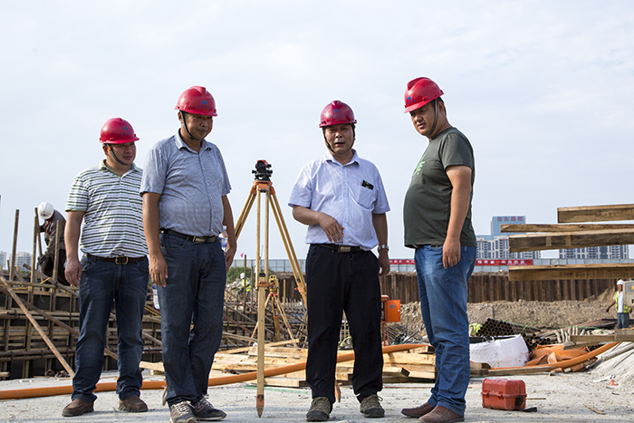 时爱祥董事长一行仔细查看了施工现场,听取了工程施工情况汇报,肯定了项目部进场一个月来的工作成效,对下一阶段的工作提出了要求:一要继续发扬江苏水建能打硬仗、善打硬仗的精神,精心组织,科学安排,有序推进各项工作;二要严格把好工程进度、质量、安全关,做到文明施工树形象,质量创优立品牌。
