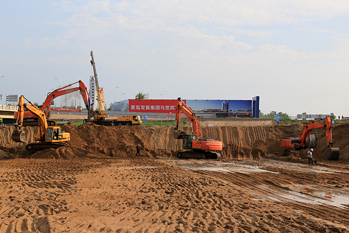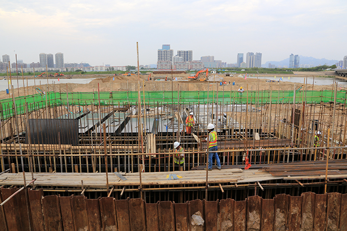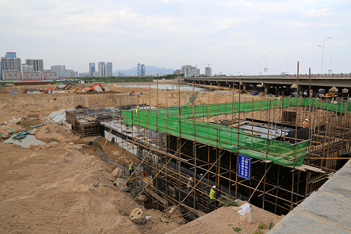黄岛皮划赛艇训练基地位于青岛市黄岛区风河下游入海口处,建成后将作为2018年第24届山东省运会赛艇比赛场地,赛后作为青岛市赛艇、皮划艇训练基地。工程合同工期160天,但根据建设计划安排,项目必须在11月底全部完成。时间紧,任务重。公司副总经理、总工程师夏国春带领项目部一班人,围绕蓄水闸坝施工主线组织开展抢工。8月16日开展施工筹备和围堰施工,8月24日第一块蓄水闸底板垫层混凝土开仓浇筑,到9月中旬,已完成蓄水闸土方开挖10万方、抛石混凝土7000方、C40F250混凝土2230方,完成钢闸门门体制作并进行防腐施工。目前,项目部全天候加班加点组织施工,计划10月20日全部完成蓄水闸混凝土工程,11月底完成闸门、液压系统安装和调试施工。