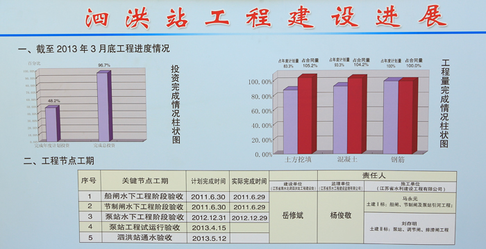 国调办主任鄂竟平来我公司泗洪站工地检查指导