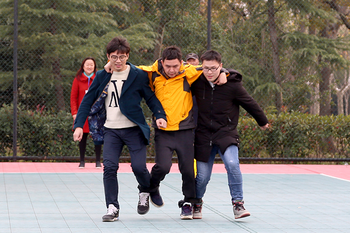 该项目要求三人四足绑腿急速前行25米折返。既锻炼自身协调能力,更考验团队合作精神。除了男生组合、女生组合,也不乏男女搭配组合。选手们相互挽着肩,高呼口号,步伐一致,充分展现了江苏水利人的团队意识和拼搏精神。公司选手朱宽锦、余立鹏、陈登瀛初生牛犊不怕虎,获得了二等奖的好成绩。