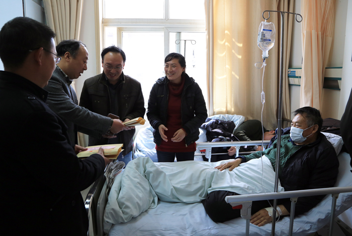 43日上午,公司党委副书记、工会主席姜启生、总经理助理、洪泽站项目经理杨斌等一行来到苏北人民医院,把第一笔爱心捐款送到游晓进的手中。他们仔细了解了游晓进的父亲、岳父、岳母的病情和治疗情况,叮嘱老人家不要顾虑太多,安心养病。