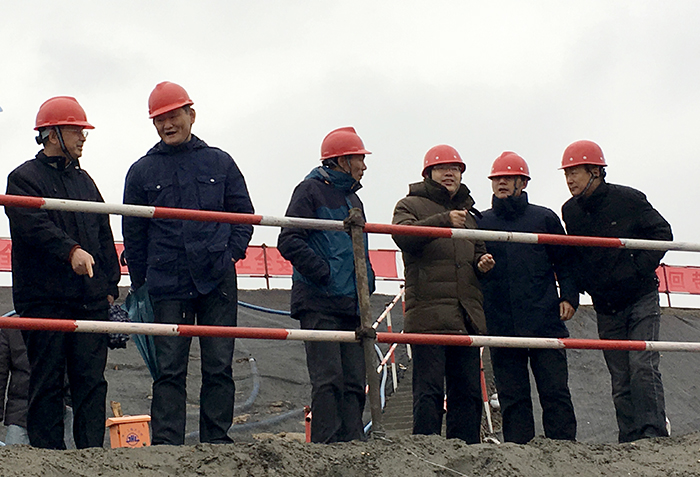 朱海生查看了工程施工现场,详细询问了瓜洲泵站工程项目自开工以来的进展情况。他肯定了工程取得的成绩,管理上严格要求,施工中精益求精,要求参建各方继续保持良好的精神面貌, 精诚团结,科学组织,抓好质量安全管理,全力推进工程施工。郭中文表态,项目部将以十九大精神为指引,在公司的带领和支持下,精心组织,严格管理,坚决完成好工程施工任务。