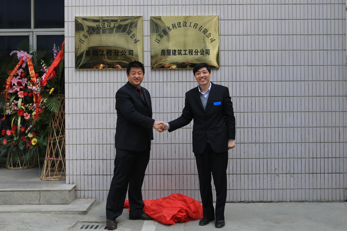 揭牌仪式前,大家在后三楼会议室召开了一个简短的座谈会。房建分公司经理吴昊汇报了前期筹建情况和未来的经营运作、市场开拓思路,并表态,将带领新公司的员工踏实敬业工作,早日打开工作局面。公司董事长朱学林、总经理夏国春作了重要讲话,对分公司的发展提出了殷切希望。他们说,房建分公司的成立,是公司三年发展规划明确的重要任务,更是突破我公司房屋建筑工程"短板"制约、培育新的经济增长点的重要举措。房建分公司要迅速运作起来,第一,要在公司直属水利项目的房建工程中锻炼队伍,积累经验;第二,要广泛调研,开动脑筋,创新工作,重点解决好资质升级问题;第三,要抓市场跑经营,逐步占有和扩大房建、市政等领域市场;第四,要抓管理强内功,用科学、规范、富有成效的管理壮大分公司实力,争取好的经济效益。