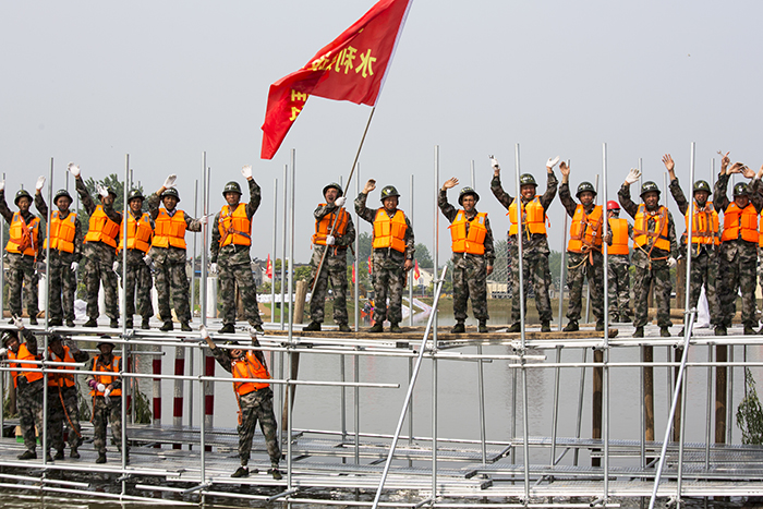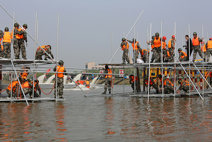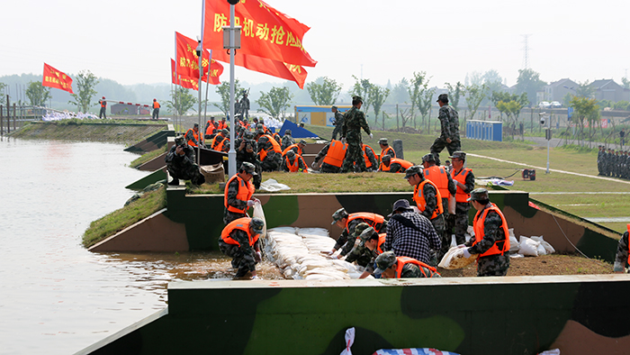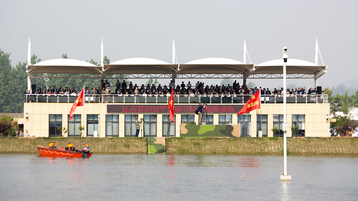 4月27日,来自江苏省军区、武警江苏省总队、省市20多支专业防汛抢险队伍以及社会化抢险队伍共400余名参训人员集结在江苏省防汛抢险训练场,开展了一场汛前军地联合防汛抢险实战演练。省防指指挥、副省长缪瑞林,省军区副司令员周志斌,省政府办公厅主任谢润盛,省防指副指挥、省水利厅厅长陈杰到现场观摩演练。省防指秘书长、省水利厅副厅长张劲松主持演练汇报会。