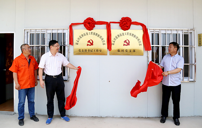 613日上午,公司新孟河延伸拓浚工程界牌枢纽项目部党支部书记工作室和汤应来劳模创新工作室揭牌仪式在界牌枢纽工程项目部举行。活动邀请省太湖治理工程建设管理局局长何勇、副局长吴忠、办公室主任薛飞、界牌枢纽工程建设处副主任戴健、监理处总监理工程师单海春参加。公司党委书记、董事长时爱祥、党委副书记、副总经理姜启生、副总经理许国安、总经理助理、二分公司经理汤应来、界牌枢纽项目部管理班子成员、全体党员以及项目部员工代表参加揭牌活动。活动由公司党委副书记、副总经理姜启生主持。