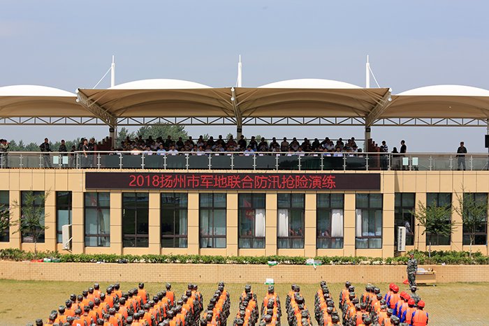 625日是扬州入梅的第一天。为做好今年的防汛工作,进一步检验军地联合抢险工作机制和抢险队伍的实战能力,25日上午,由扬州市防汛防旱指挥部、扬州军分区联合组织的模拟抗洪抢险行动在江苏省防汛抢险训练场展开。我公司作为中国人民解放军江苏省扬州军分区特邀单位,组织防汛抢险突击队参加了演练。市委常委、扬州军分区司令员郦斌、副市长丁一等市领导、各县市区负责同志、市各级防汛部门负责同志观摩演练。我公司董事长时爱祥现场指挥并出席观摩演练大会。