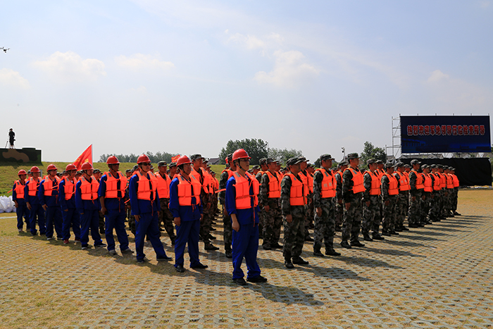 上午906分,演习正式开始,我公司以基础分公司经理李存笔带队的防汛抢险突击队整装待发。