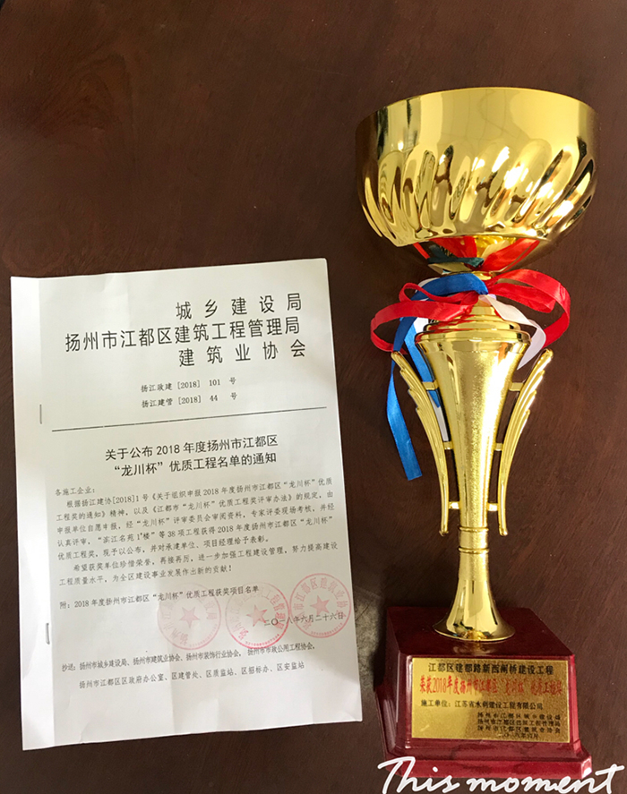 “龙川杯”优质工程奖是扬州市江都区建设工程行业在工程质量方面的最高荣誉奖项,其评选要求高,竞争激烈。经江都区城乡建设局、建筑工程管理局、建筑业协会组织评审委员会审阅资料,专家评委现场考核,并认真评审,本年度江都区在技术难度、规模、投资等方面影响较大的30项工程获此奖项。