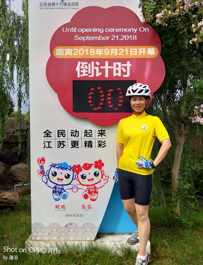 今晚,扬州人民将怀着无比喜悦的心情迎接江苏省第十九届运动会开幕仪式。我公司女员工曹正玲,更是格外的兴奋和激动。今晚她将与百名骑士团志愿演出者们一起,身穿骑士服,头戴骑士盔,脚踩动感的车轮,踏着时光的潮流,排成4个不同方阵,一路前行,来到开幕式舞台献上精湛的暖场演出。
