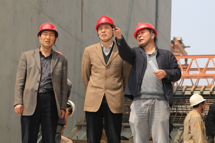 这一切来自于他们科学规范的施工组织,严格苛刻的现场管理。虽然是“三天完成基坑土方开挖、两天一块底板、十五天完成闸墩交通桥、七天完成排架工作桥”,但他们对质量的要求、安全的管理没有一丝一毫的马虎和松懈。攻克基坑降水难关,开展弧轨调节支柱、支铰一次预埋,翼墙先高后低施工,高陡坡滚水堰混凝土浇筑工艺创新等措施,保证了工程进度和质量。两个月里省质监站已检查了5次,李亚平厅长、陶长生副厅长等厅领导多次现场检查指导,对工程施工既是大力地支持,也是有力地鞭策,更是对工程合力地推进。