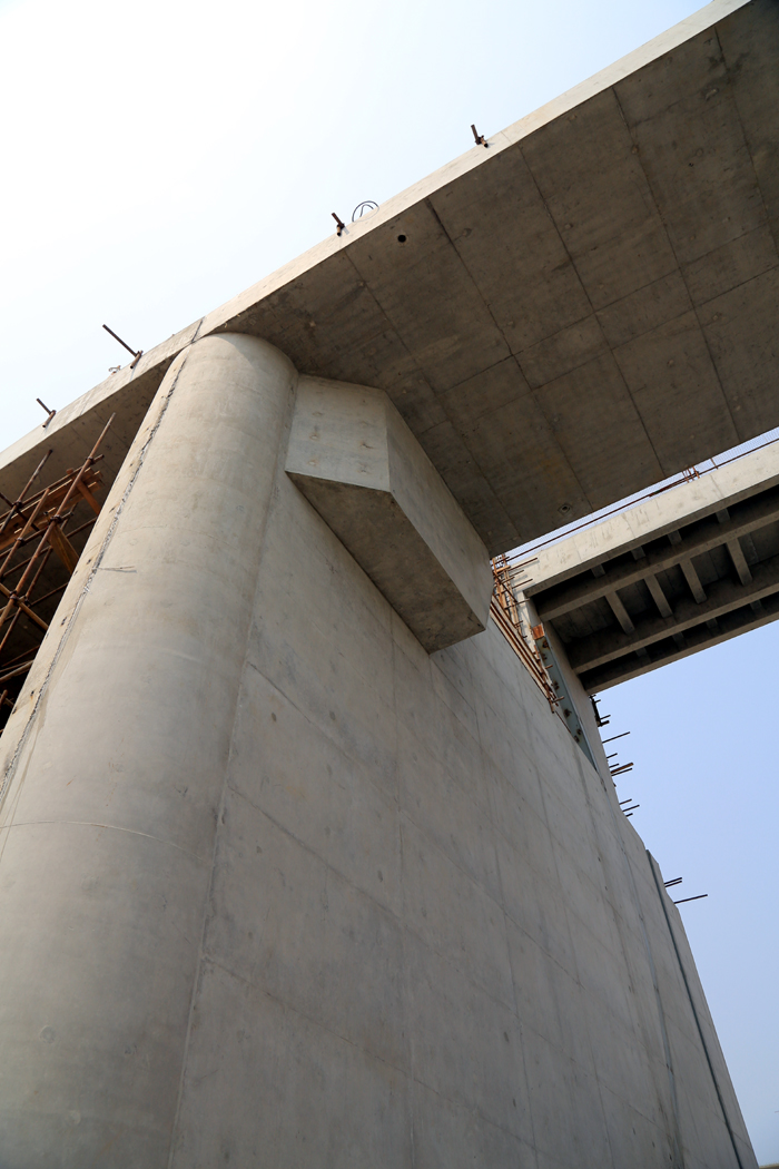 如今站在下游看去,节制闸已初露峥嵘,闸墩已全部拔地而起,两侧的翼墙如同雄鹰展翅,光洁的混凝土表面溢着青光,林立的脚手架,穿梭地机械,全副武装的工人,一切都给人以信心,以希望。