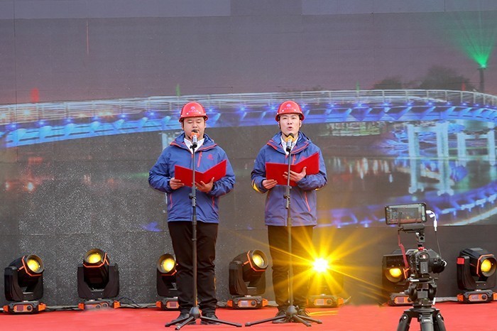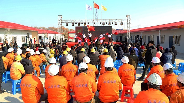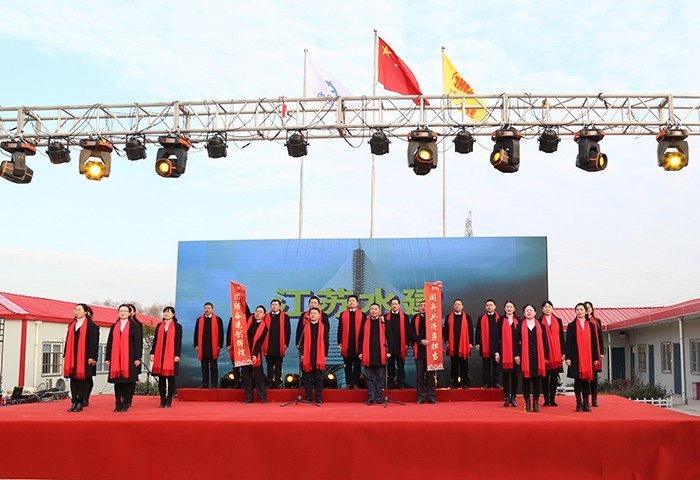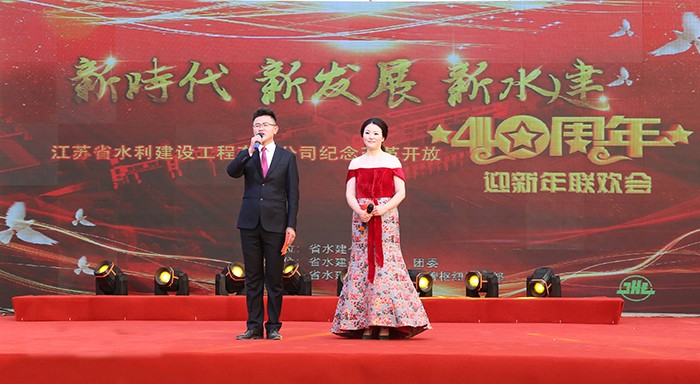 1229日,由公司党委主办,公司工会、团委、新孟河界牌枢纽项目部承办的职工迎新年联欢会在江苏省重点水利工程---新孟河界牌枢纽的施工现场隆重举行,邀请了新孟河工程建管局、新孟河界牌枢纽工程建设处、公司所属各单位、各部门的领导和职工以及项目部施工一线工人约200多人到场观看演出,共同庆祝伟大祖国改革开放40周年。