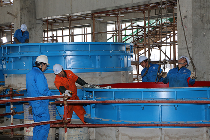 自2018年12月下旬首台水泵进场以来,安装队伍精心组织施工,倒排工期攻坚克难,一直到腊月三十和正月初一还在工地接卸到工机泵,初三就全员到岗进入到紧张、快节奏地安装进程中,全员加班满负荷施工。