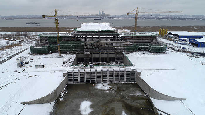 瓜洲泵站工程是扬州市“城市安全第一工程”、“不淹不涝第一工程”, 其建成后,扬州市的主动排涝能力将达到每秒170立方米,即使出现淮河洪水、长江洪水、天文大潮、城市涝水“四聚头”的水情,也能从容应对,城市防洪标准将提高到100年一遇。我公司于2017年8月1日正式开工建设,到2019年1月底,已完成泵站主体土建施工,主厂房封顶,进入机电设备安装阶段。