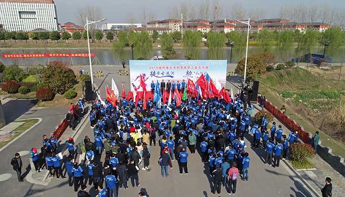 上午8时30分,扬州市水利局人事处处长季暑月主持了开幕式,我公司董事长时爱祥在开幕式上致辞,扬州市水利局局长康盛君致辞并宣布活动开始。参加活动的有从事水行政管理的,有从事水利工程管理的,有从事水文水资源管理的,有从事水利高等教育的,而更多的是来自水利工程勘测、设计、施工一线的职工和志愿者们,可以说是扬州水利历史上第一次大家庭聚会,是扬州市域水利工作者携手同行,向建国70周年献礼的一个盛会,更是全面落实河湖长制、纪念2019年世界水日、中国水周、保护母亲河、推进重点水利工程建设的一次“新长征”。
