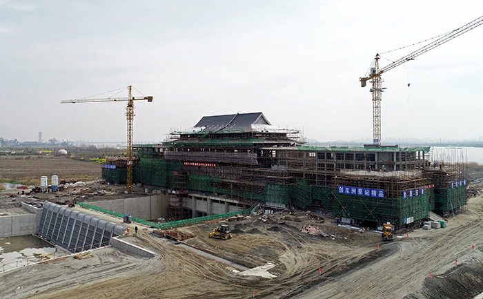 徒步的终点是由我公司正在紧张施工的瓜洲泵站。该工程是扬州水利史上单体最大的泵站工程、扬州“城市安全第一工程”。工程建成后,主城区防洪排涝标准将由目前的不足10年一遇提高到20年一遇,不仅为城区防洪装上一扇安全大门,也为城区河流有序流动、清水活水提供动力源。徒步大军的到来,为工程建设者们冲刺节点通水目标凝聚了力量,鼓舞了士气。