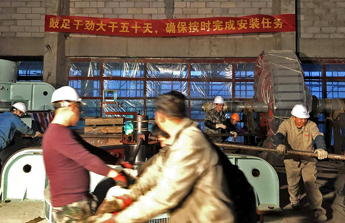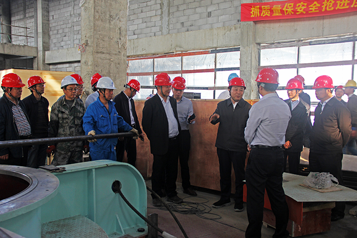 谢正义首先察看了泵站主厂房、机电安装作业现场,他说,我曾经在脑海中想象工程的规模,但没想到现场是如此壮观雄伟。在正在进行的3号机组盘车现场,谢书记与机安分公司党支部书记王建平等同志亲切握手,向现场加班的工人师傅们表示感谢和慰问。谢书记向安装负责人陆建江同志了解盘车工序的过程和目的,当时爱祥同志介绍机工老师傅陈庭霞同志,并介绍大师在安装时通过听、看、摸、测等手段发现问题解决问题时,谢书记夸赞:不得了,真厉害。