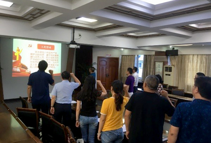 会上,全体党员集中观看了电教片《孤岛32年》,宣读了公司党委对2018年度优秀共产党员的表彰决定,参会党员中党龄最长的庄家顺同志带领全体党员集体重温了入党誓词。