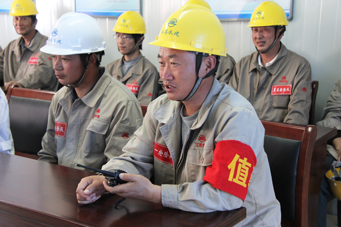 演练前,项目经理顾明如检查了防汛领导小组成员及演练人员到位情况、应急救援物资存放及设备完好情况;项目部技术负责人对防汛预案进行了解说,项目部副经理王天荣就应急预案的启动条件作了说明。14时,以“长江水位接近下闸首围堰顶高层”为假想的演练活动拉开序幕。项目部接到泰州引江河第二期工程建设局防汛领导小组讯情通知后,防汛小组组长、应急预案总指挥、项目经理顾明如第一时间启动防汛应急救援预案,发布抢险命令,组织开展抢险。副经理王天荣立即开展现场组织,紧张有序地落实各项抢险救援措施。5个防汛抢险队分工明确,各部门配合默契,抢险物资齐备到位,施救组织有效得力。58分钟后,应急防汛抢险演练完成了演练程序,取得了良好的效果。