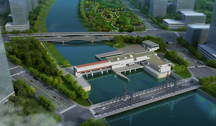 锡澄运河整治工程已被列入省级重点水利工程项目,是江阴市贯彻落实长江大保护发展战略的重要实践。此次开工的定波水利枢纽工程是锡澄运河整治工程的重要组成部分,工程位于锡澄运河与长江交汇口处,已由省发改委和省水利厅联合批复同意实施,批复概算总投资4.3486亿元,工程主要实施内容包括新建节制闸、双向泵站以及上下游引河等。工程等别为Ⅱ等,长江侧防洪标准按100年一遇潮水位设计,内河侧按50年一遇洪水位设计。工程总体布置采用闸站结合一字式的布置形式,节制闸布置在河道东侧,泵站及管理区布置在河道西侧。节制闸闸孔总净宽为48m,采用5孔布置方案,中孔净宽16m,其它4孔净宽8m。泵站采用双向竖井贯流泵,设计排涝流量120m3/s,单机排涝流量30m3/s,泵站上下游共设12扇快速钢闸门,泵站内外两侧各设拦污栅和清污机等。配套建设中央控制室,建立计算机监控及视频监视系统,集中控制和监视节制闸和泵站等主要设备的运行。