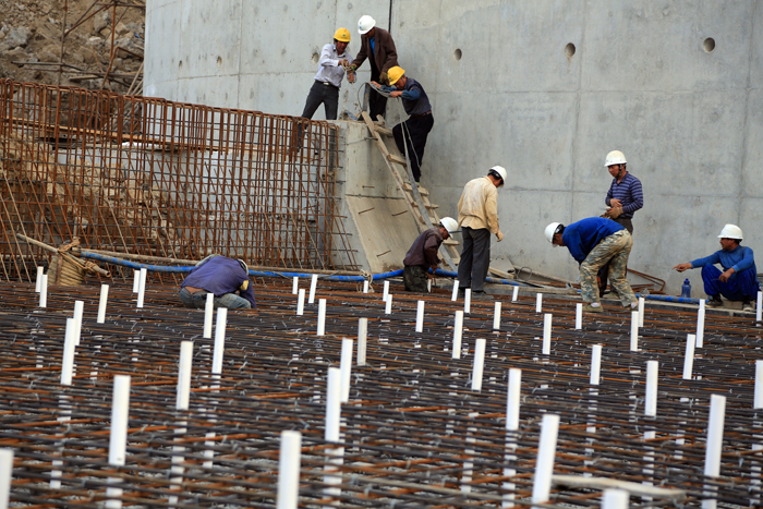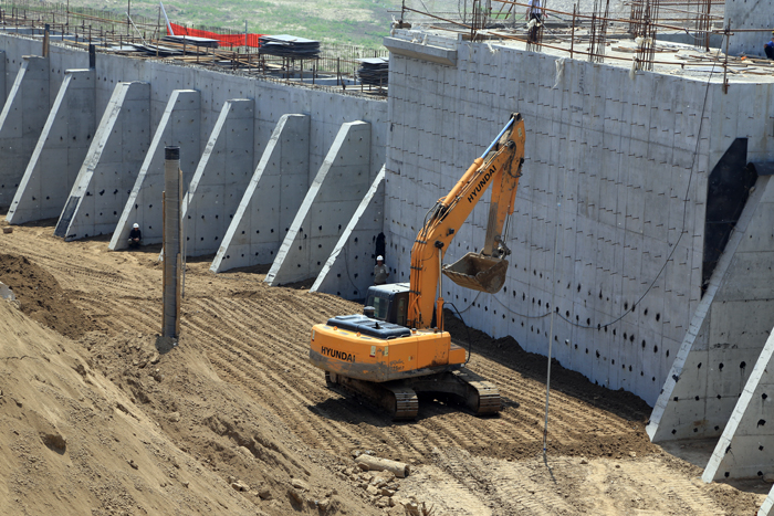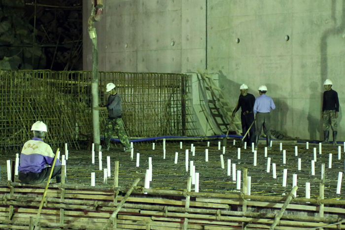 “下一步我们将集中精力完成最后一块消力池浇筑,翼墙墙后回填土填筑,补齐上下游护坡护底,以及加紧进行闸门、启闭机和小水电电机安装调试,预计到5月20日可基本完成全部水下工程,为提前实现通水验收目标创造有利条件。”项目经理李新海告诉记者。记者注意到,李经理黝黑的脸庞上充满着自信的笑容。而在项目总工周海银心里更有一笔帐:“泗阳闸工程从正式开工到现在,3个多月时间,拆掉一座老闸,新建了一座7孔(孔宽10m)的节制闸和两孔小水电,完成砼近30000方。高峰期投入近500号人,模板近20000平方米,钢管900余吨,扣件10多万只。人员和周转材料的投入是类似正常工程的两倍以上。近一个多月来,工作面全面打开后,每天都是两台以上泵车在浇筑混凝土,连续有上百个小时的浇筑强度。”超常规的投入保证了抢工的需要,但大量的人力物力带来的是工程更周密的计划、更繁琐的安排、更严格的考核。项目部两天一次生产会,主要管理人员每天至少一次碰头会,一切都按计划有条不紊的进行。所有人员都按照计划按时按点的坚守岗位,只能提前,不能落下,特殊部位调整时必须把时间再抢回来。