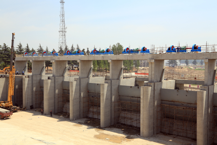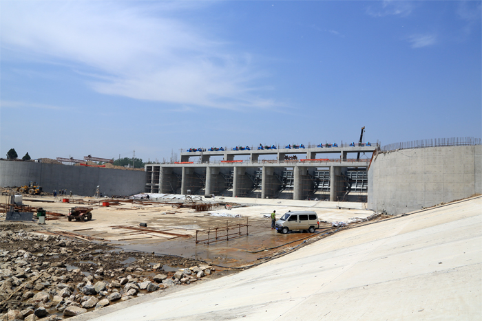 同时,科学的施工调度管理,使现场多点作业同步施工,交叉繁忙而井然有序;而敬业的管理队伍、熟练的技术工人,保证了施工效率,实现了人、机、料、法、环各个要素的有机融合。工程施工场地狭小,进出场道路不畅,曾一度束缚了节制闸施工的手脚。省厅、地方政府和工程建设处各级领导给予了极大的关心,李亚平厅长、陶长生副厅长等厅领导多次现场检查指导,协调解决工程难题。