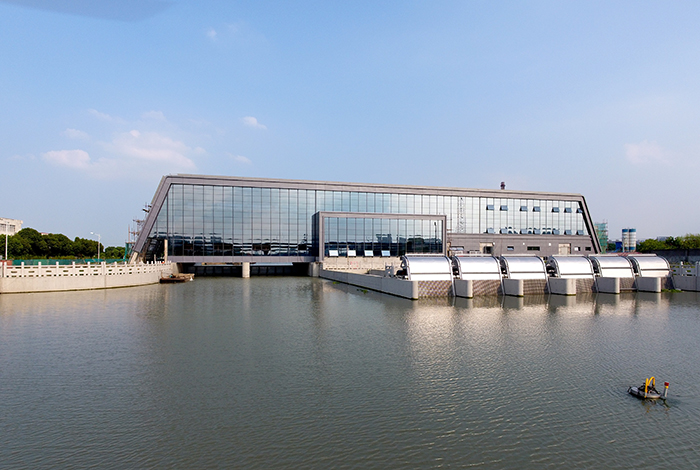 白茆塘枢纽工程为常熟市畅流活水工程的重要组成部分,其任务是通过新建本工程,结合其它口门建筑物,形成常熟市城区防洪包围,利用防洪大包围工程,结合新建内部配水工程的综合运行调度,形成城区河道活水畅流。工程包括泵站和节制闸,节制闸净宽为2*10m,泵站规模为45m3/s,兼顾排涝和活水功能。泵站选用3台套竖井贯流泵,单泵设计流量15m3/s,配套三相异步电动机,功率450kW;泵站设10kV专用变电所,设两路10kV进线电源。