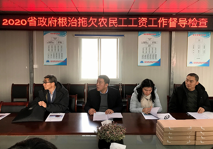 督导组一行现场查看了民工作业施工情况和生活情况,参观了农民工学校,并在项目部会议室开展了资料检查与座谈。检查会上,项目经理吴刚汇报了项目部民工工资支付和农民工工资保障的相关情况,督导组查看了民工实名制管理台账、合同、工资发放表、签到册等相关资料,并与农民工进行了座谈、交流,详细了解了民工工资收入、工资支付等情况。督导组对项目部的民工管理及工资支付工作给予了充分肯定,并要求参建各方进一步规范用工,按时支付职工工资,杜绝工资拖欠现象。